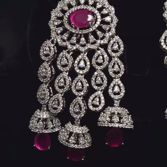 Pink and silver American Diamond earrings.
